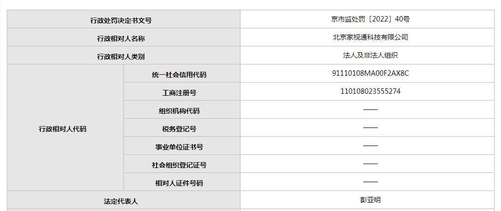 行政处罚决定书京市监处罚〔2022〕40号披露,当事人是微信公众号“电视家福利号”的运营主体。该公众号内投放的广告均由当事人发布。当事人与北京同禧科技有限公司签订广告发布合同,于2021年11月4日在“电视家福利号”为后者发布了《一条让男人爱不释手的!“枪弹分离”0压迫,量子养身,穿一次就上瘾!》的广告。当事人接受执法人员调查后,在11月4日当天撤下该广告。