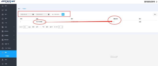 选择查询时间,可查询到区间内所有节目播放统计次数,以便更好的管理广告节目运行。
