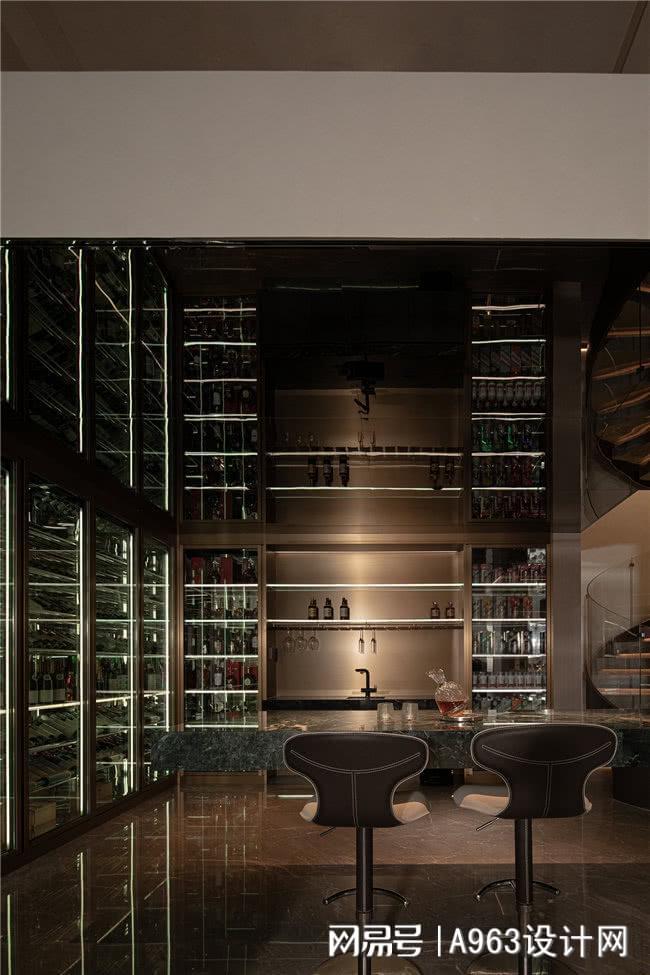 精致的酒杯错落悬挂,等待着与美酒共舞。柔和的光线在大理石台面上流转,为每一个欢聚时刻营造出恰到好处的氛围。