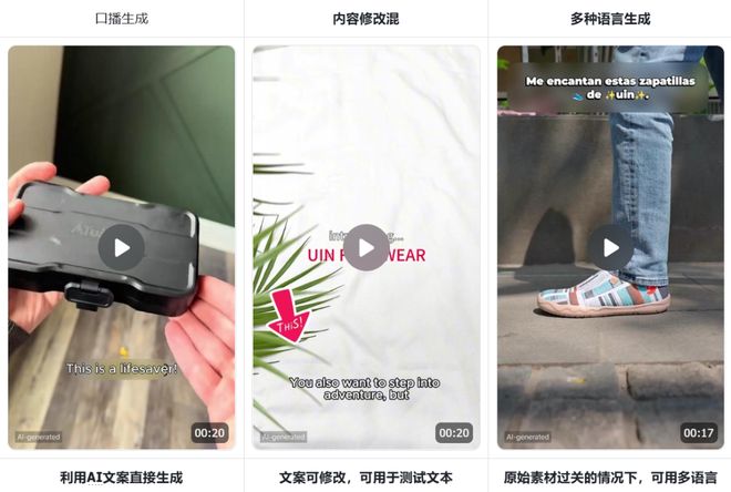 此时,利用AI进行脚本测试便成为了一种极具吸引力的破局思路。AI能够系统性地提升测试效率、降低单次试错成本,并基于数据快速锁定潜力方向。TikTok官方也在去年11月推出了一款好用的AI视频生成工具,即Symphony Creative Studio,可以在几分钟内将简单的内容输入转化为适合TikTok的创意视频。如果有需要的广告主可以去尝试使用噢~